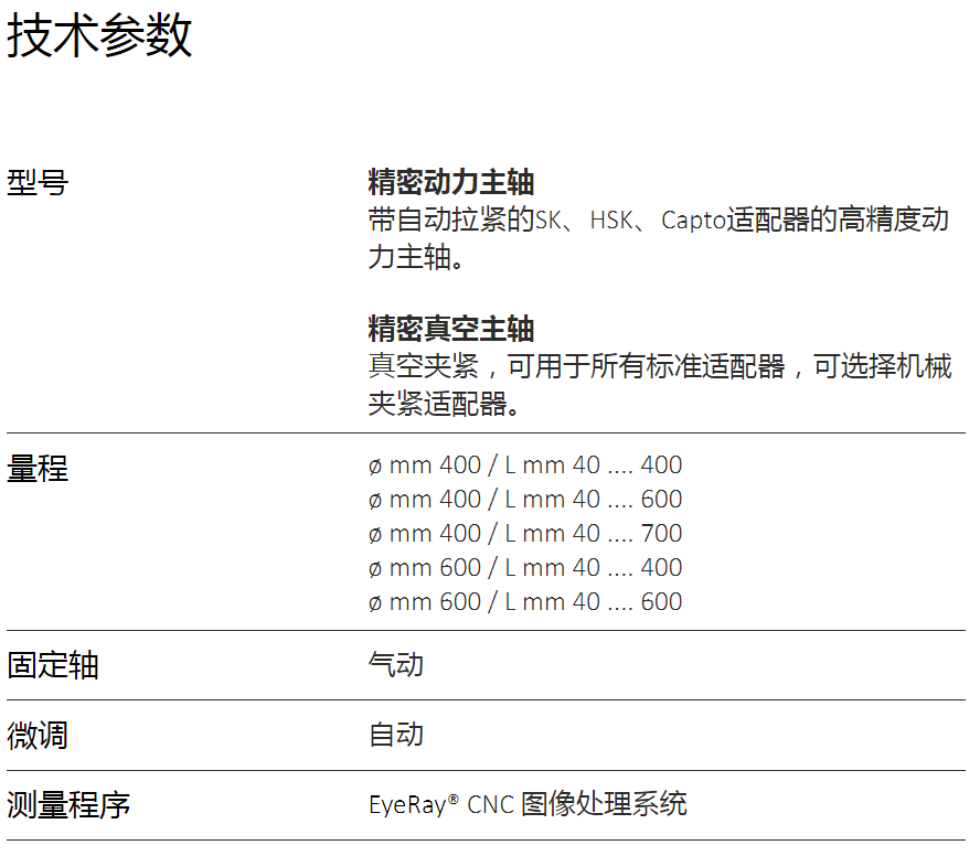 ● 机械拉紧或真空吸紧的高精度主轴
